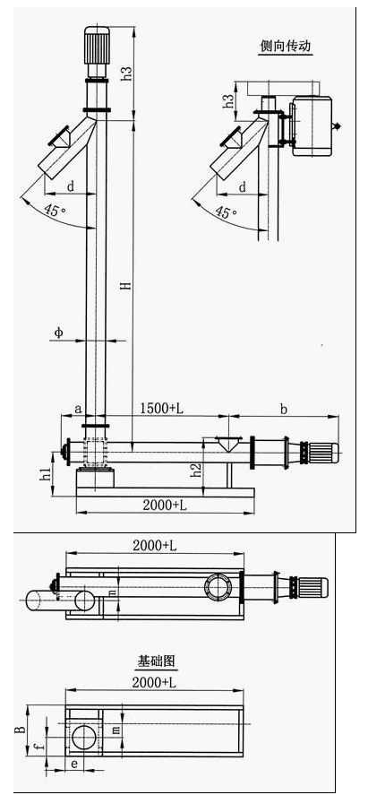 2、螺旋輸送機(jī)分水平槽機(jī)體(即喂料螺旋槽機(jī)體)和垂直機(jī)體兩部分。垂直機(jī)體分頭節(jié)、中間節(jié)、尾節(jié)三部分,每一部分又有集中不同規(guī)格的長(zhǎng)度依機(jī)高選擇,可組成3~15m不同高度的整機(jī),螺旋機(jī)每增加0.5m為一高度規(guī)格,供用戶選擇。